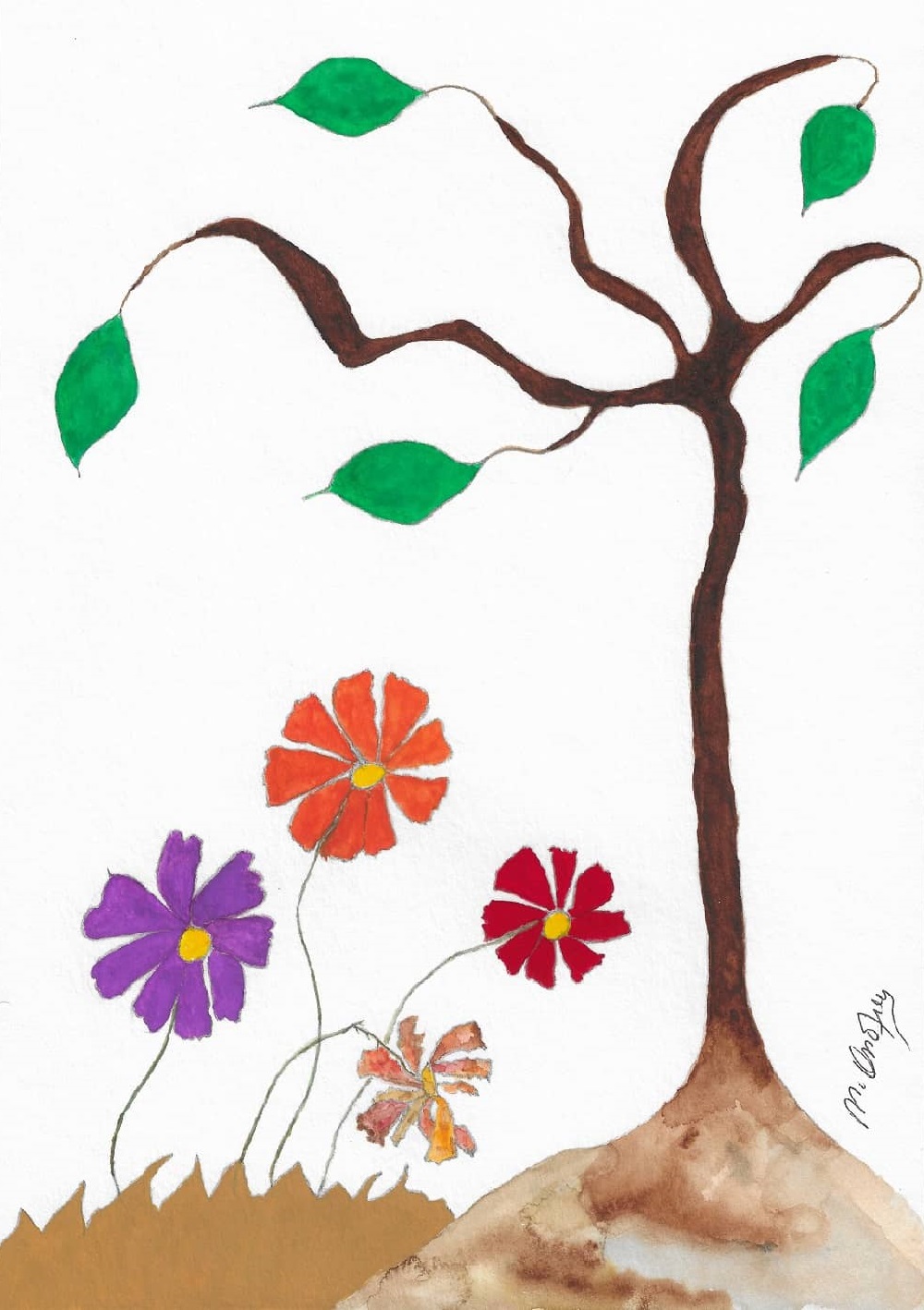 Cosmos & Green Leaf II
